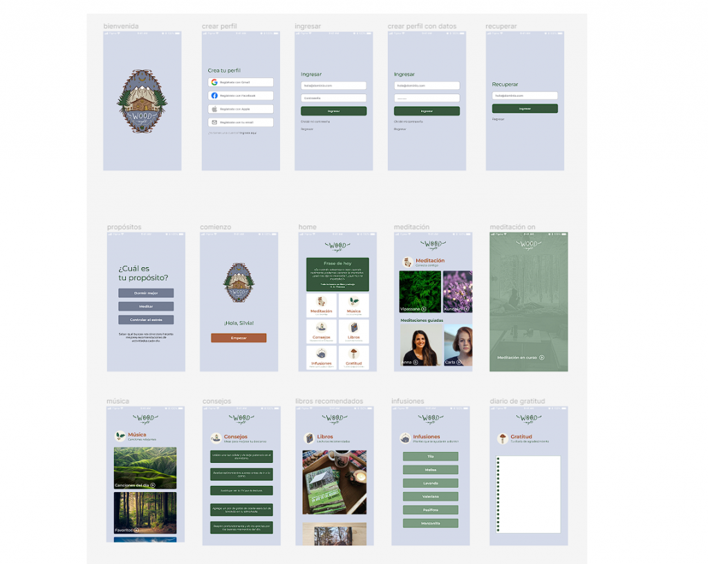 Para ello, he realizado una investigación que me ha ayudado a entender cuales son las razones principales por las que la sociedad no puede dormir bien. En base a ésta, he diseñado una app con temática inspirada en la naturaleza que nos ayuda a lo largo de todo el día a conectar con nosotros mismos. Ésto nos hace llegar a la noche con otra perspectiva y sensaciones que nos permiten tener un descanso de mayor calidad.
